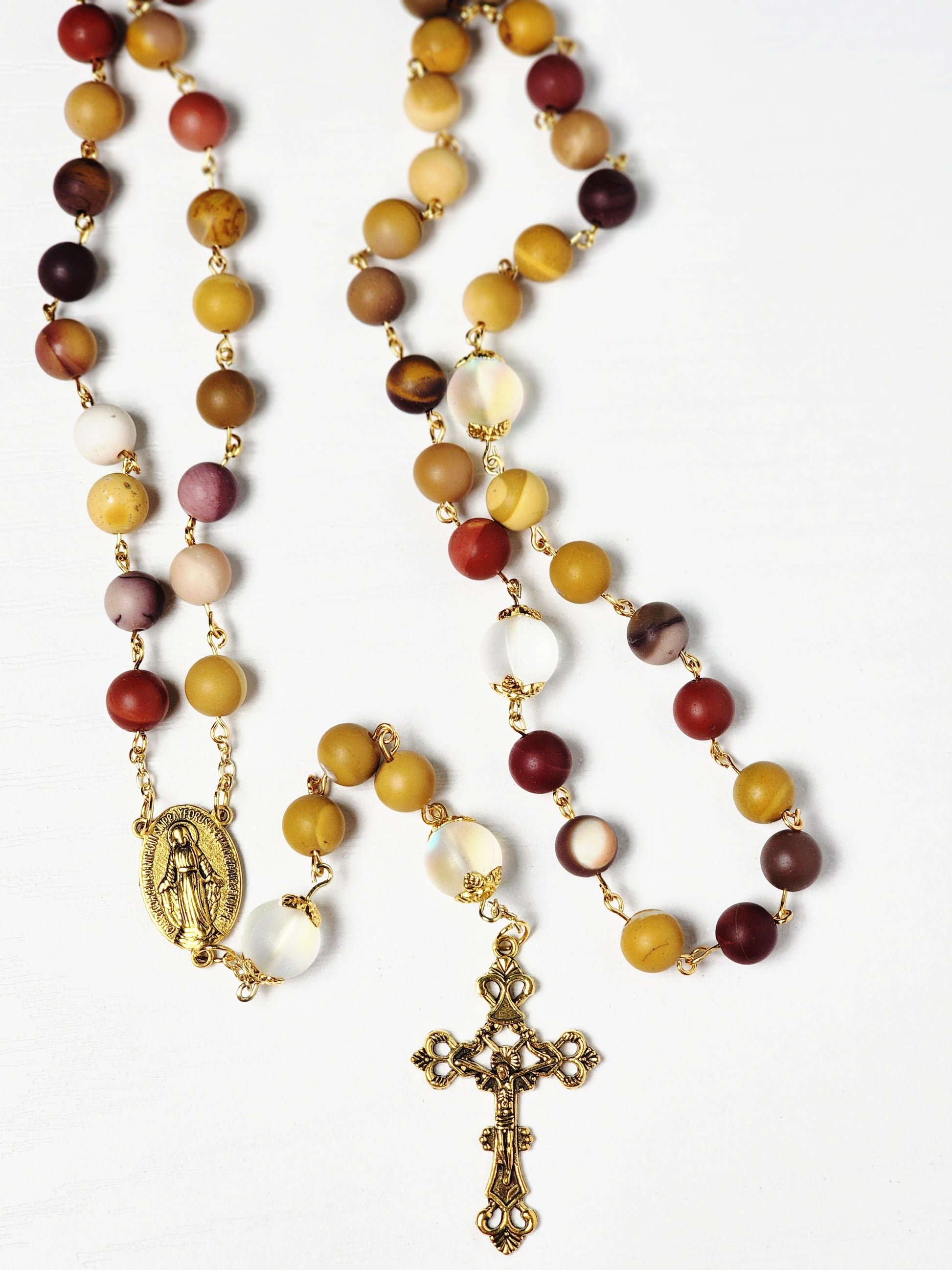 Mookaite Jasper / Clear Mystic Our Father Beads